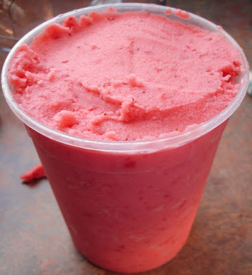 I will start with the gelato, well at least a version of gelato. I believe that most true gelato recipes call for whole milk, sugar, cornstarch and then the flavoring (fruit, chocolate, etc.). I wanted a lighter, less fat recipe and found one at Cooking Light. Lowfat buttermilk is substituted for the whole milk, resulting in only .8grams of fat per 1/2 cup serving! I decided to give it a try, but first, out to purchase an ice cream machine.